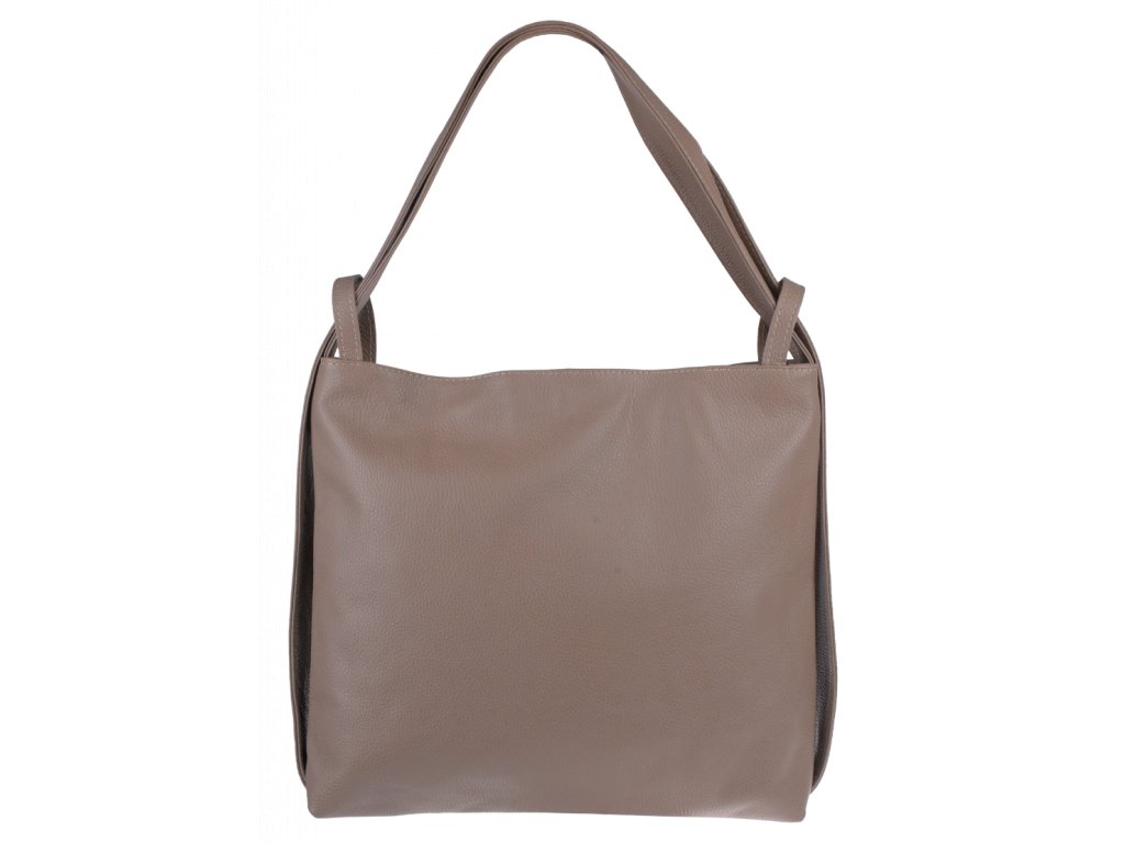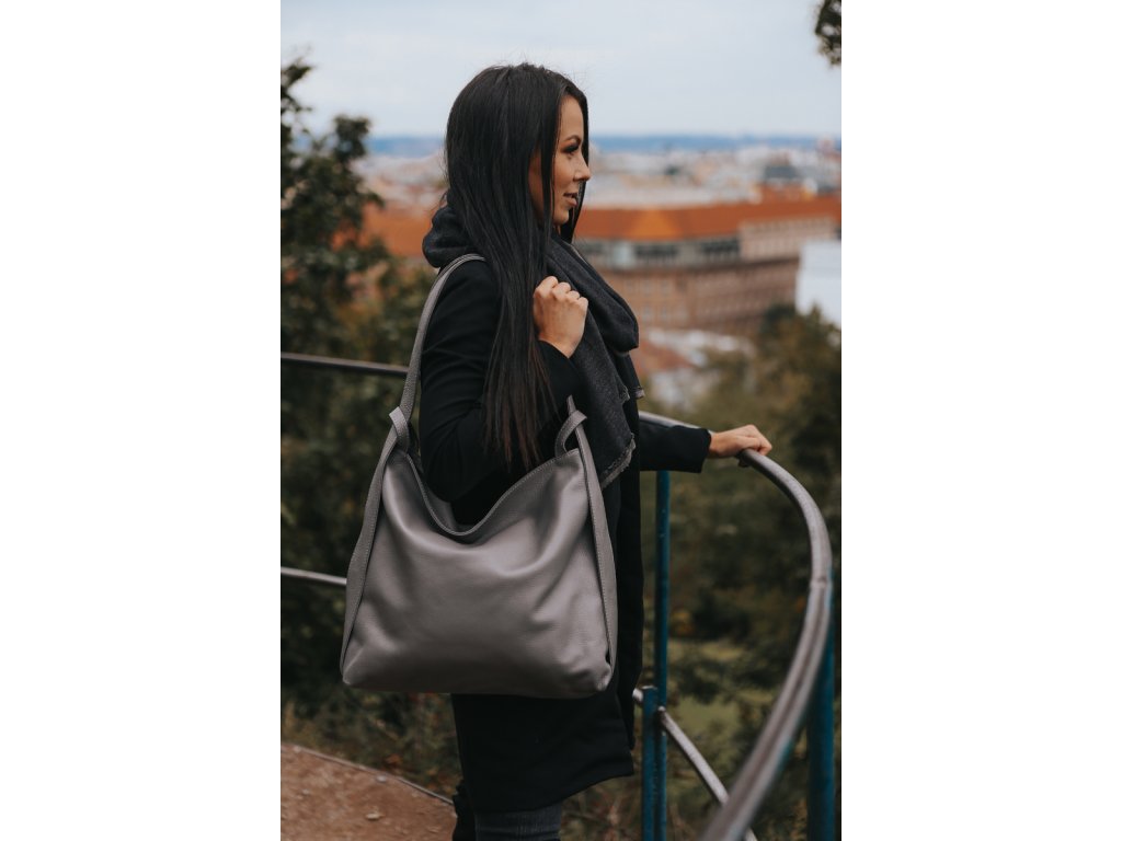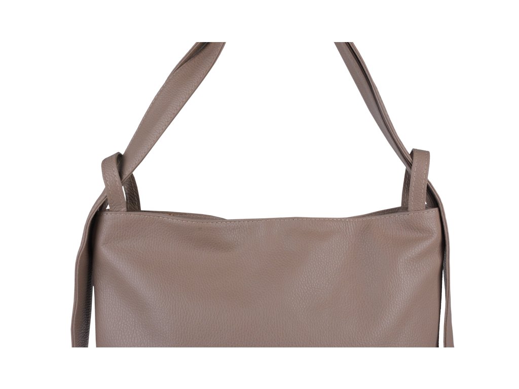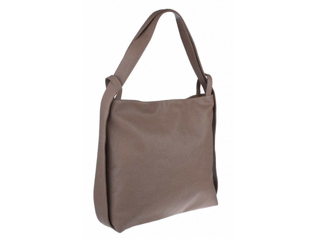 Krásna kožená kabelka s jednoduchým dizajnom v hnedej farbe. Táto kožená kabelka je uzatvárateľná pomocou zipsu. Disponuje pohodlnými ušami dostatočnej dĺžky, takže jej možno nosiť pohodlne cez rameno alebo ako batôžtek. Pohodlne sa do nej zmestia dokumenty formátu A4.