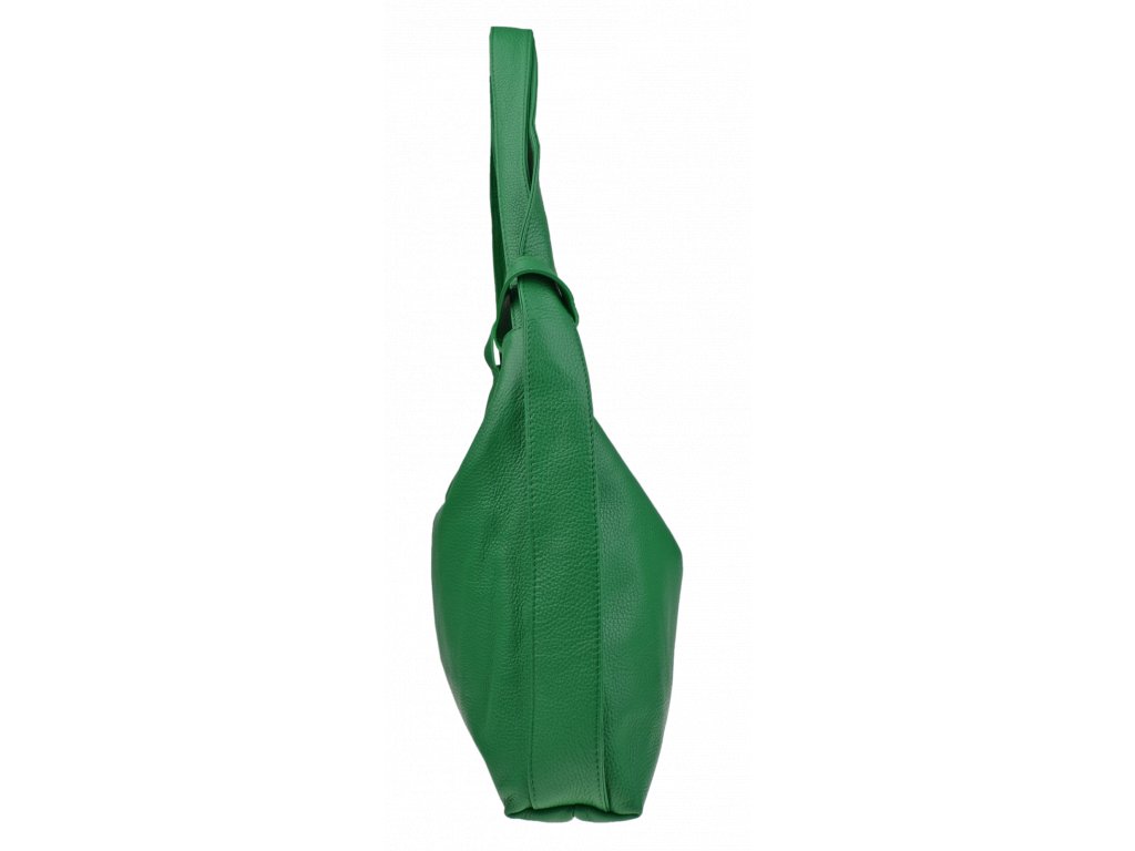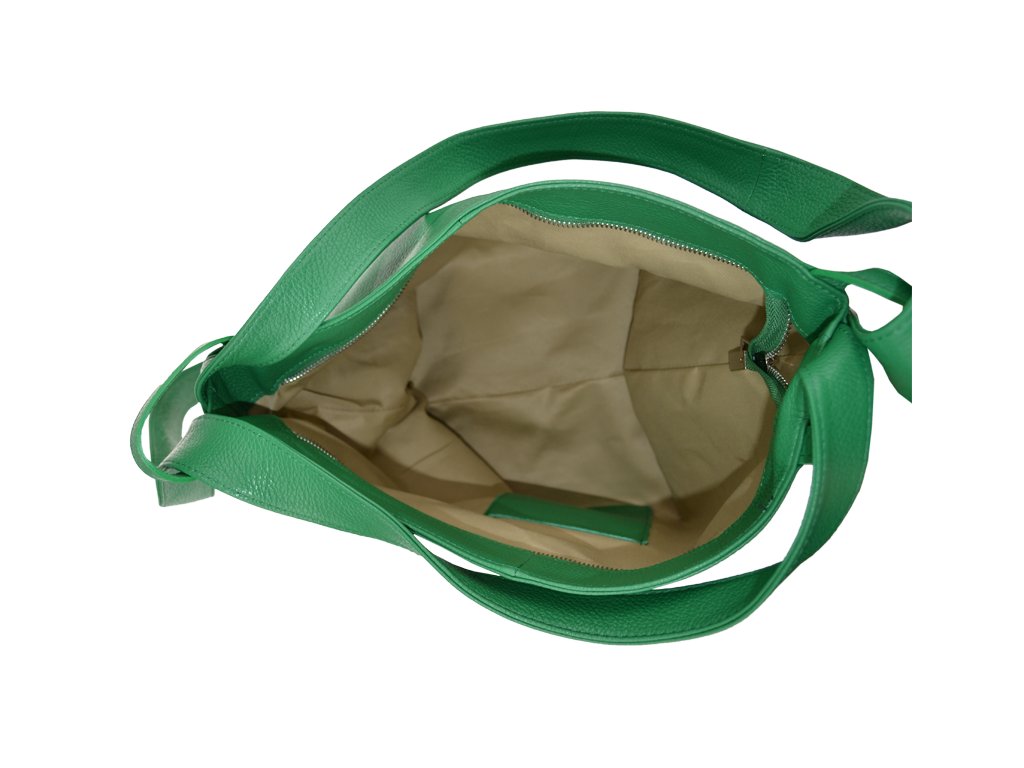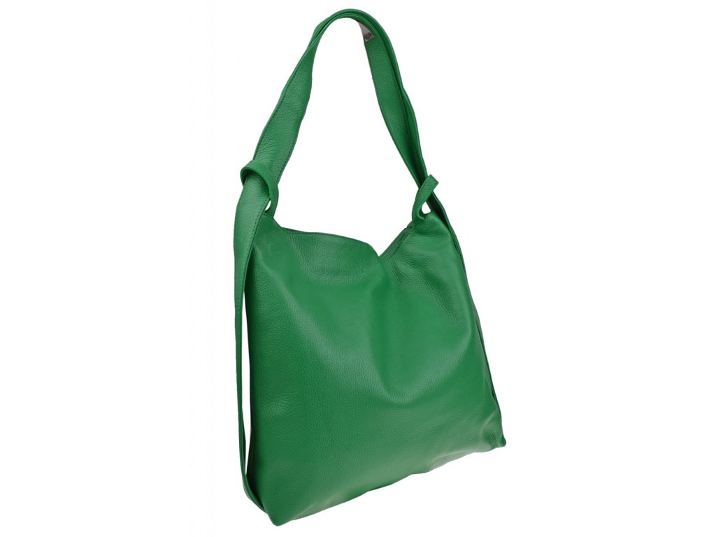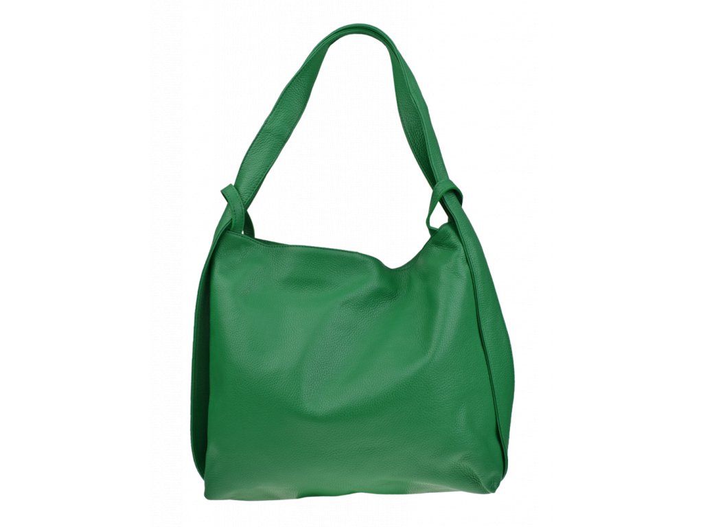 Krásna kožená kabelka s jednoduchým dizajnom v zelenej farbe. Táto kožená kabelka je uzatvárateľná pomocou zipsu. Disponuje pohodlnými ušami dostatočnej dĺžky, takže jej možno nosiť pohodlne cez rameno alebo ako batôžtek. Pohodlne sa do nej zmestia dokumenty formátu A4.
