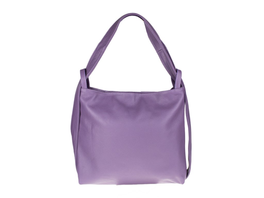 Krásna kožená kabelka s jednoduchým dizajnom vo fialovej - levanduľovej farbe. Táto kožená kabelka je uzatvárateľná pomocou zipsu. Disponuje pohodlnými ušami dostatočnej dĺžky, takže jej možno nosiť pohodlne cez rameno alebo ako batôžtek. Pohodlne sa do nej zmestia dokumenty formátu A4.