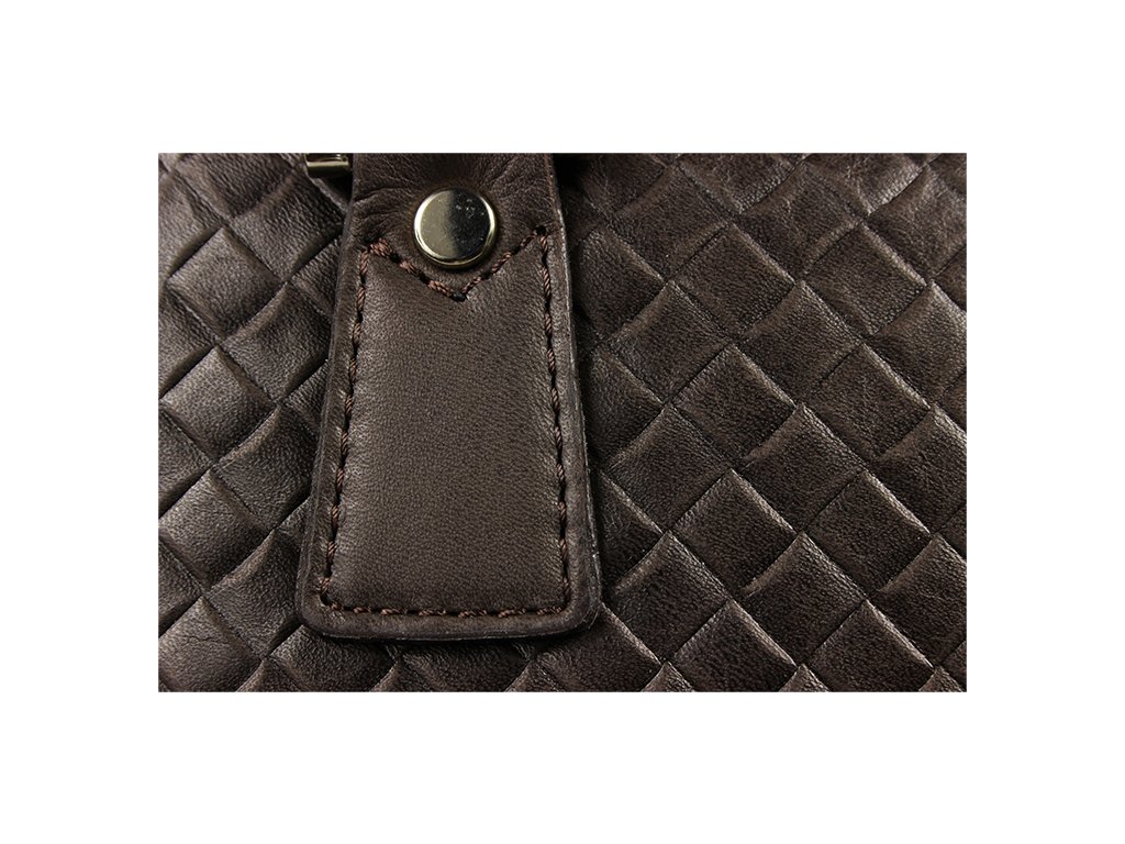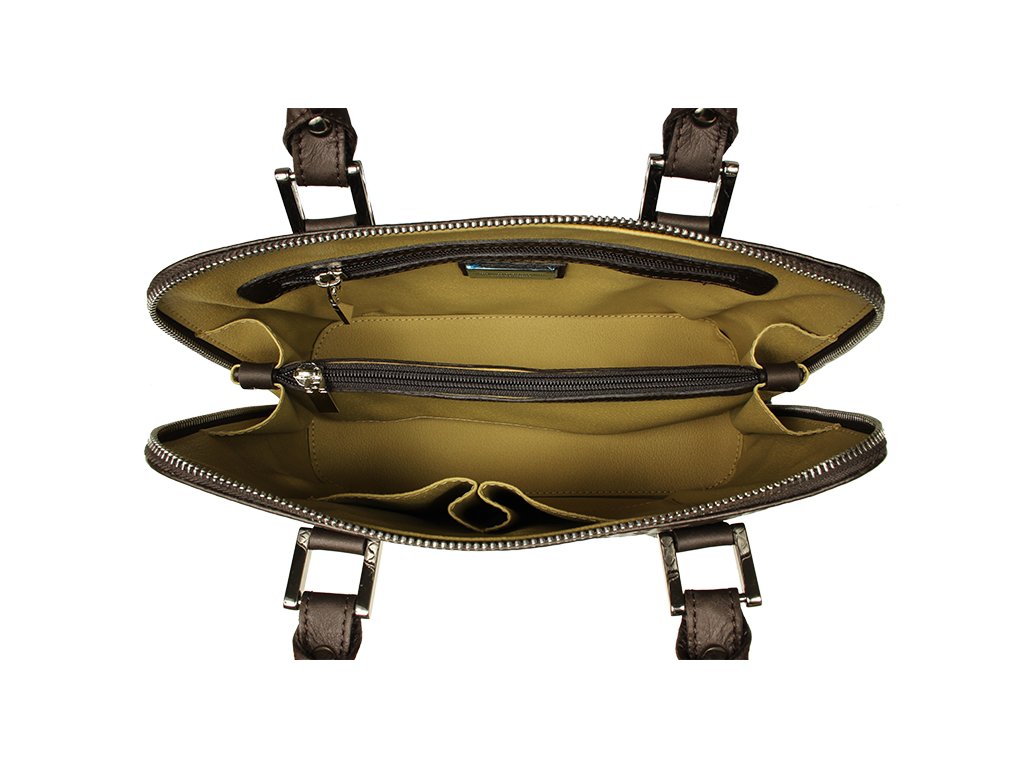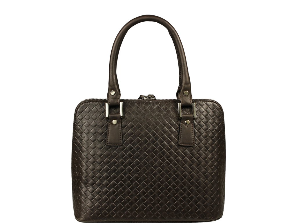 Menšia kabelka moderného dizajnu v hnedej farbe je veľmi kvalitne spracovaná. Je vhodná pre nosenie do ruky. Táto kožená kabelka je uzatvárateľná na zips, ktorý sa rozopína po celom jej obvode. Kabelka je vyrobená z odolnej kože a dobre drží tvar. V jej vnútri je priečka slúžiaca aj ako vrecko na zips, na bočných stenách nájdeme ďalšie vrecko so zipsom a dve malé priehradky. Kabelka má naviac nastaviteľný popruh s maximálnou dĺžkou cca 120 cm.