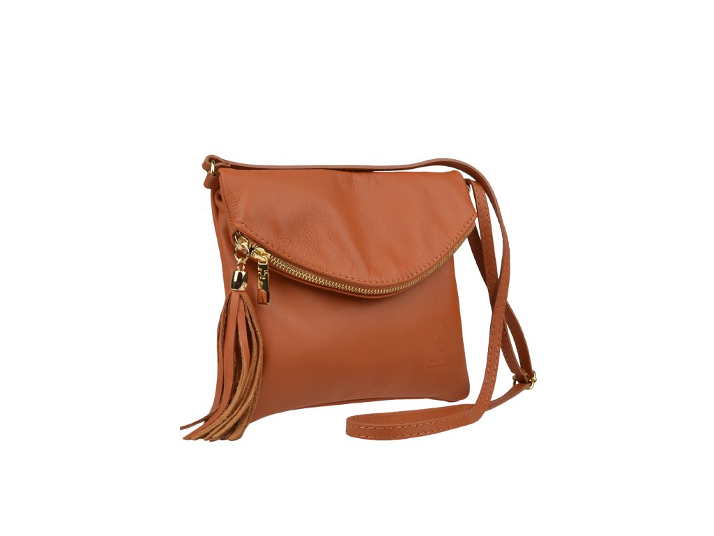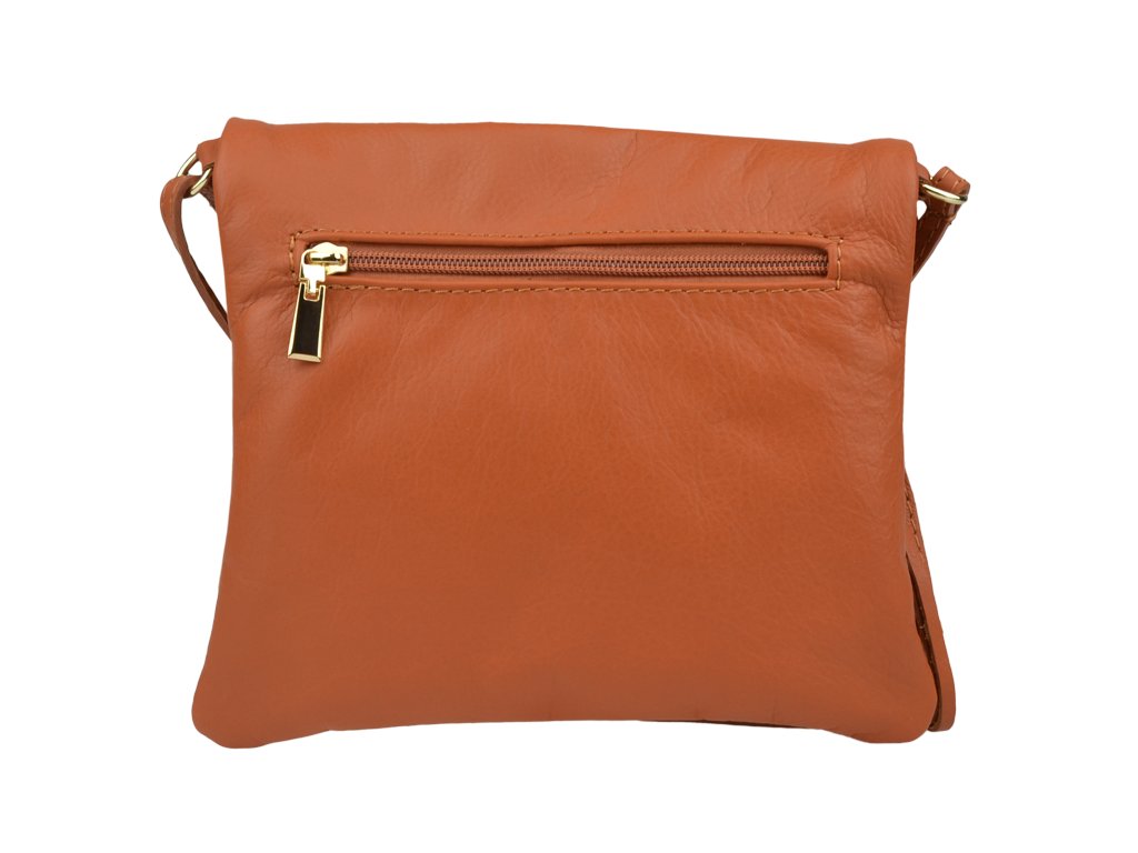 Kabelka vyrobená z pravej mäkkej kože. Poklop kabelky s ozdobným zipsom a príveskom slúži ako vrecko. Nosí sa cez rameno a po predĺžení popruhu ju možete nosiť crossbody (krížom). Kabelka sa uzatvára pomocou patentky a vnútorná priehradka sa uzatvára na zips. Dĺžka popruhu je 140 cm.