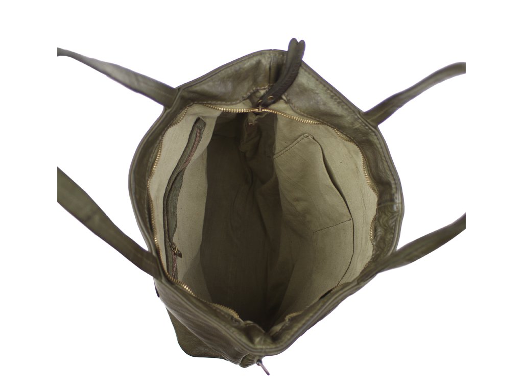 Kožená a priestranná kabelka v zelenej farbe. Jednoduchý dizajn a množstvo priestoru z nej vytvára praktickú tašku, ktorá je vhodná na každodenné nosenie, do práce alebo školy. Vnútro kabelky disponuje vreckom na zips. Súčasťou balenia je nastaviteľný popruh s maximálnou dĺžkou cca 100 cm.
