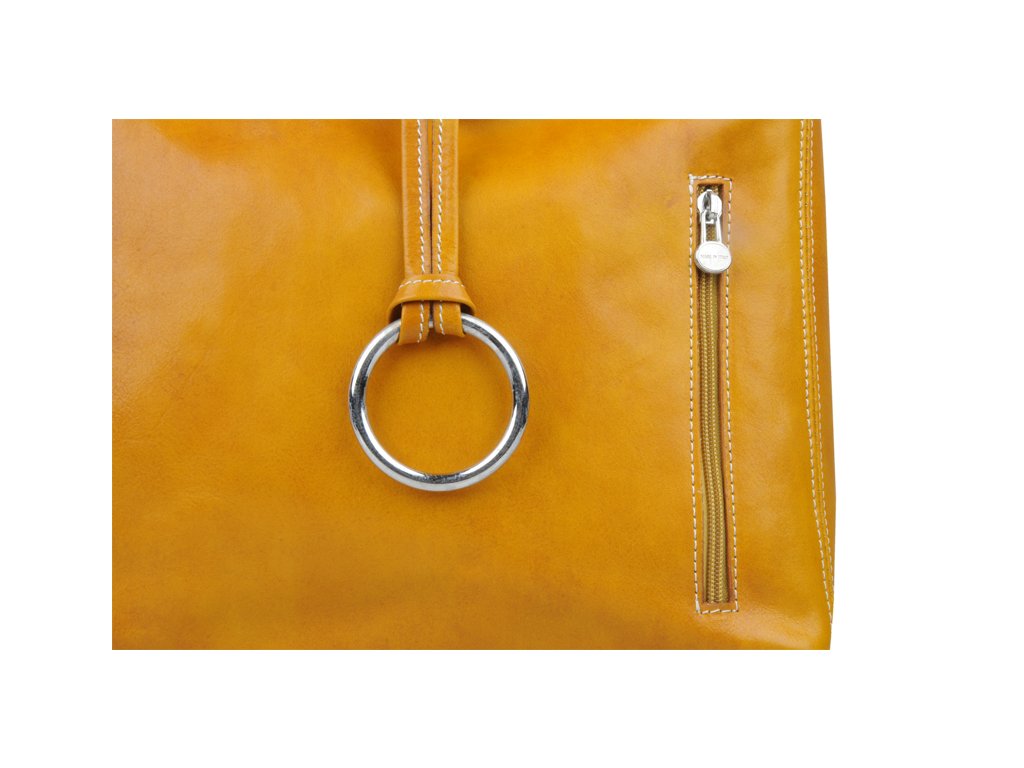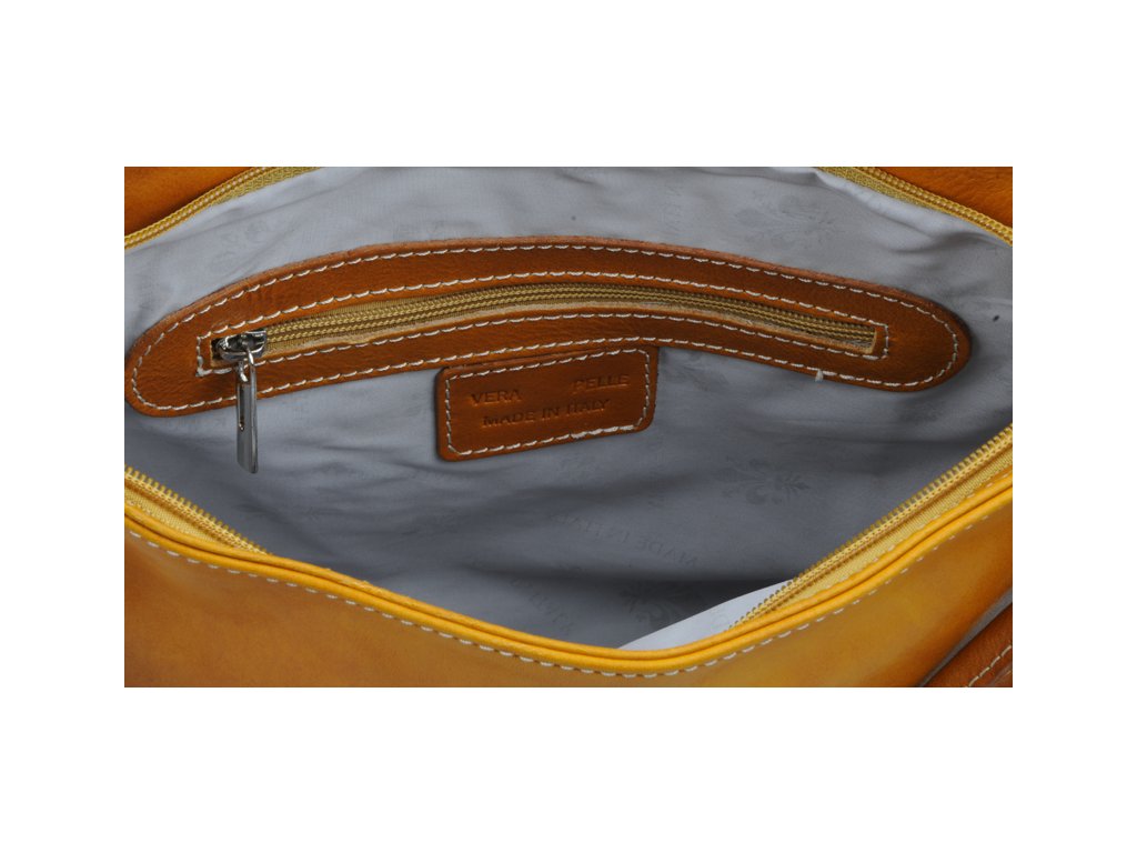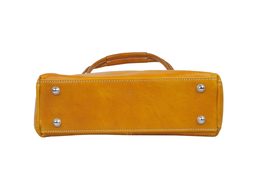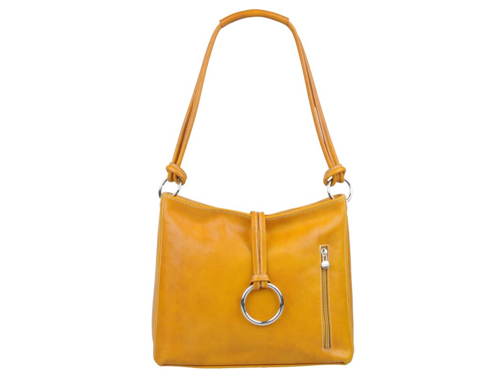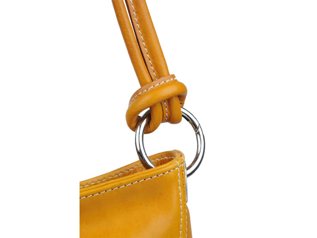 Stredne veľká kabelka klasického designu v žltej farbe nositeľná cez rameno. Na jej boku nájdeme vertikálne vrecko na zips a vo vnútri priečku slúžiacu aj ako zipsovacie vrecko a na bočnej stene ďalšie vrecko. Kabelka sa uzatvára pomocou zipsu a disponuje ozdobným krúžkom. Hĺbka dna je 9 cm.