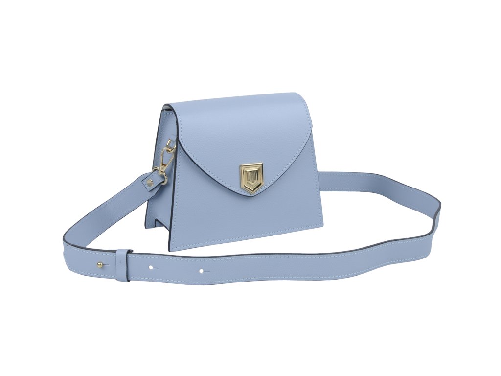Malá šikovná kabelka so zaujímavým tvarom. Je vyrobená z pravej poctivej kože s hladkou úpravou a dobre si drží svoj tvar. Je vhodná na nosenie cez rameno alebo ako crossbody.