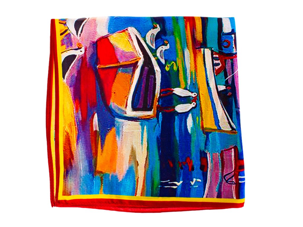 Elegantná malá hodvábna šátka s jedinečným vzorom.