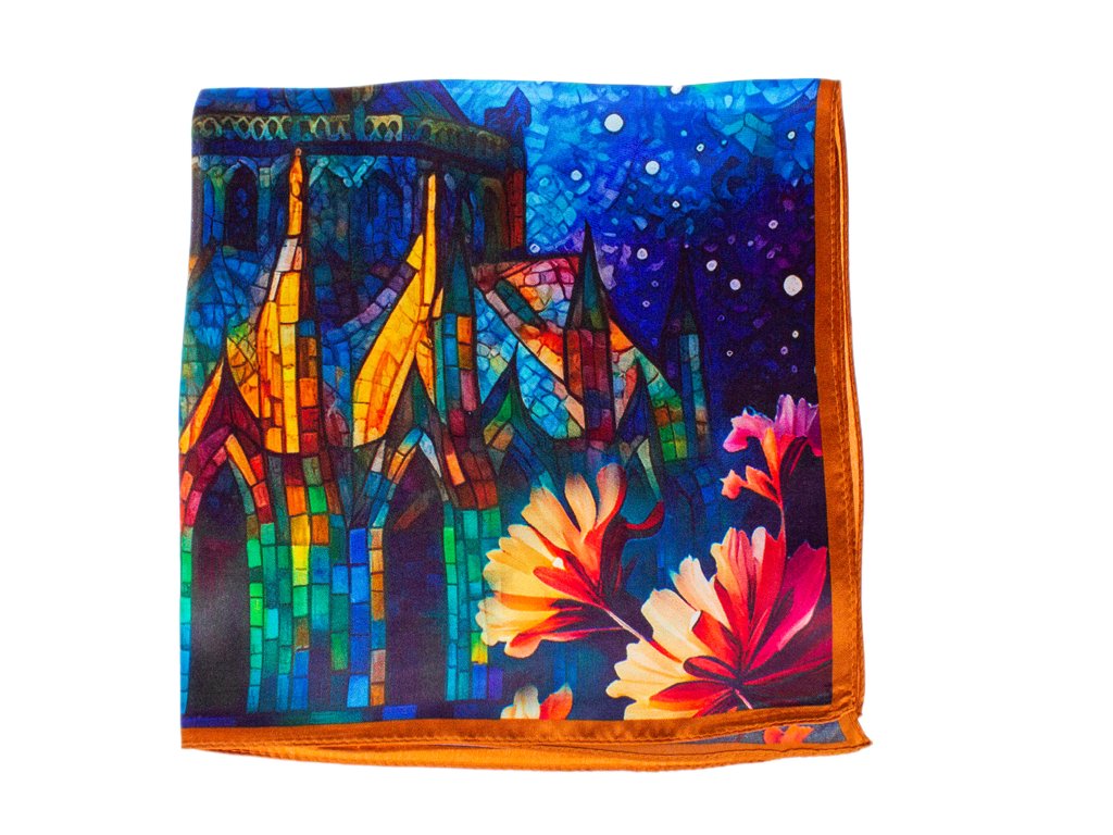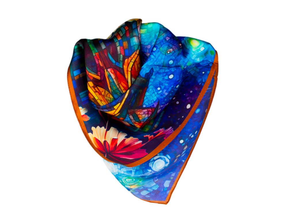 Elegantná malá hodvábna šátka s jedinečným vzorom.