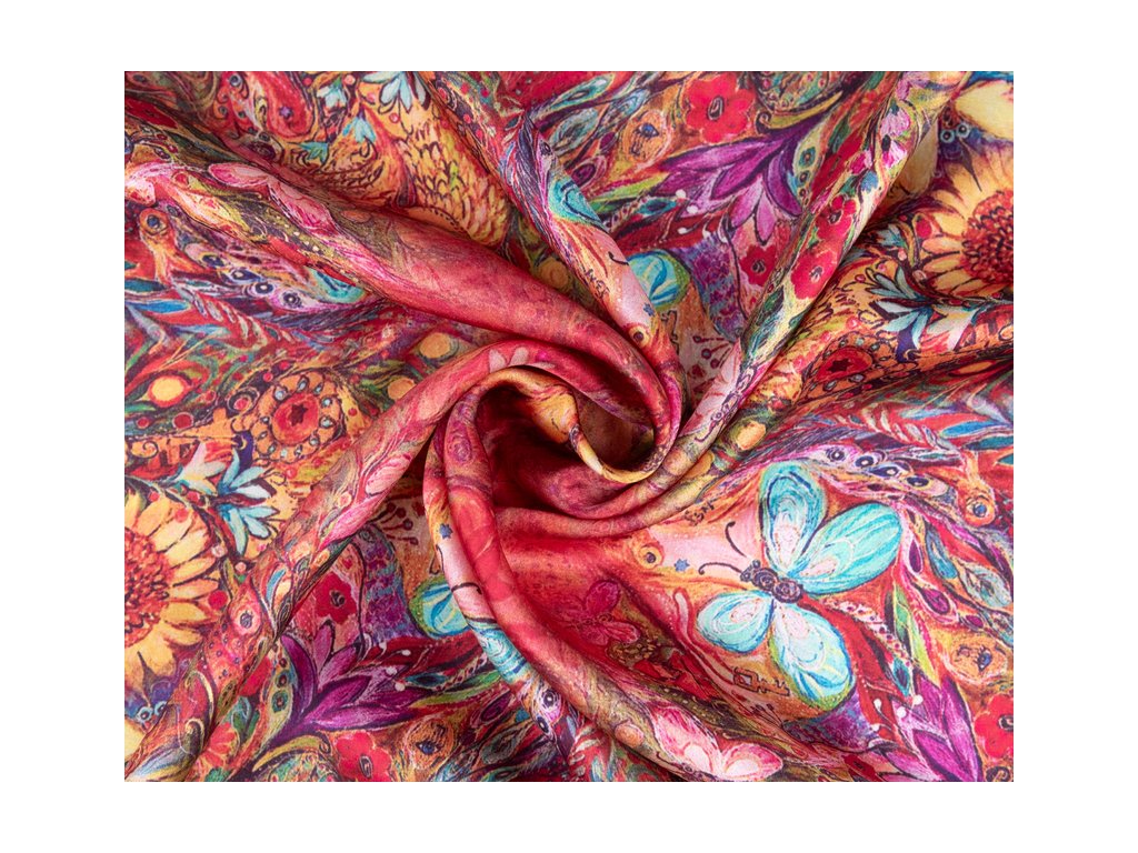 Elegantná malá hodvábna šátka s jedinečným vzorom.